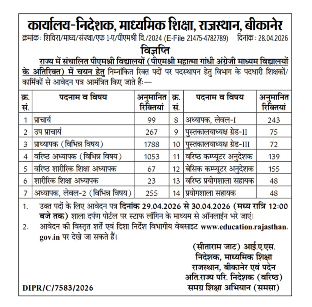 8 लाख अभ्यर्थी इंतजार में, 7 साल में 2 बार चतुर्थ श्रेणी भर्ती, 1 बार भी परीक्षा नहीं, 2019 की रद्द, 2025 की 5670 पदों वाली भी अटकी राजस्थान हाईकोर्ट में चतुर्थ श्रेणी कर्मचारी भर्ती पिछले 7 साल में दो बार विज्ञप्ति निकाली गई, लेकिन अब तक एक बार भी परीक्षा आयोजित नहीं हो सकी। […]